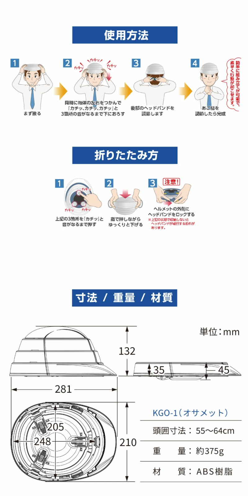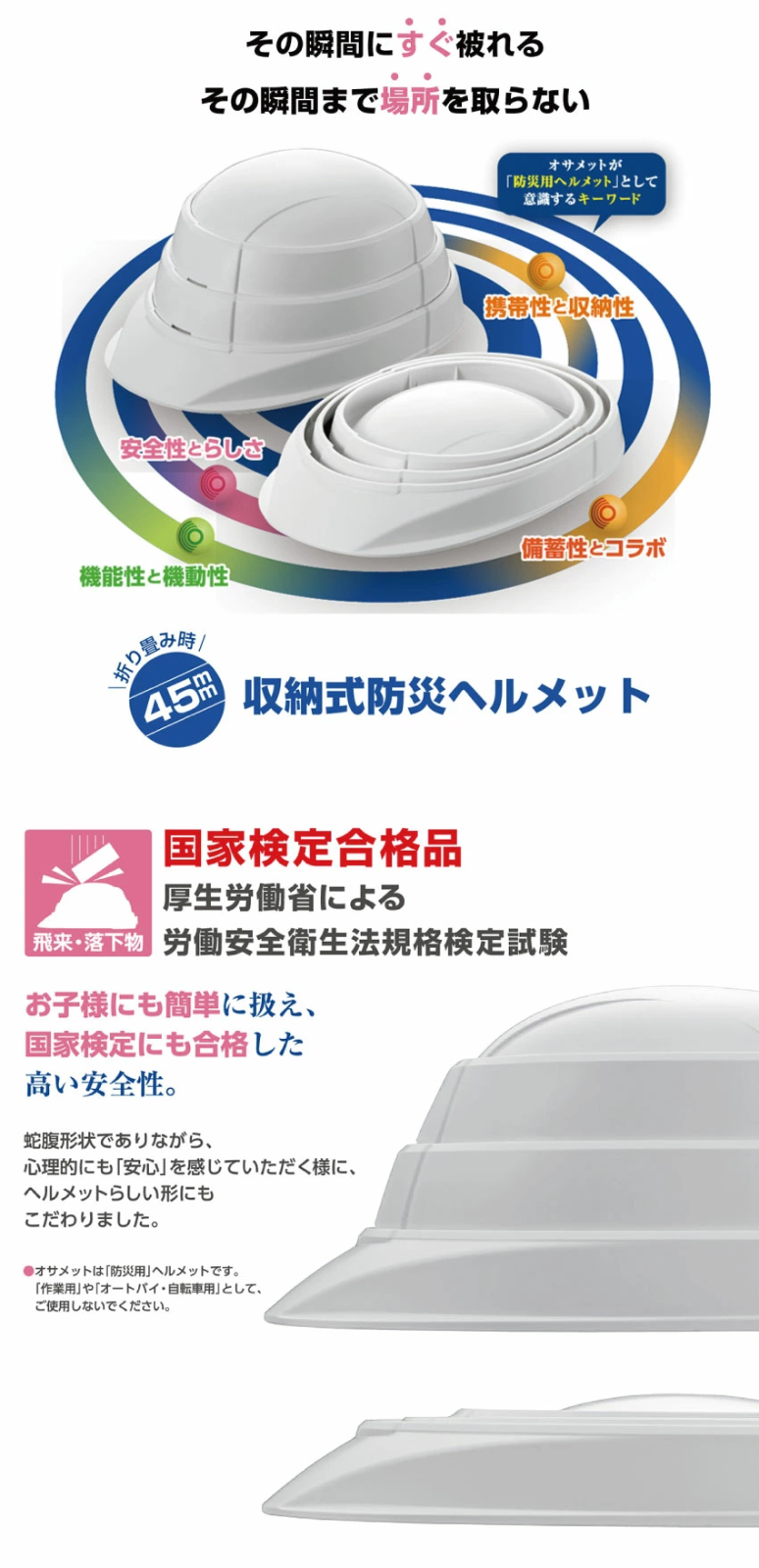 商品名稱 : Osamet 摺疊式防災安全帽|日本原廠 A4 收納規格(KGO-1)